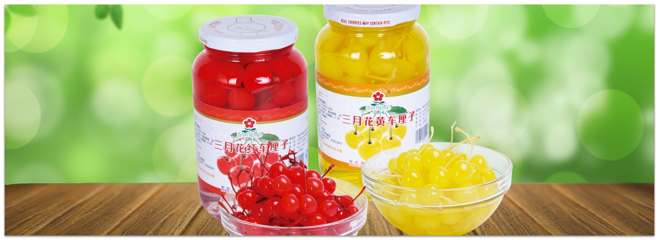 • 產(chǎn)品描述:本產(chǎn)品采用應(yīng)季新鮮的櫻桃精制而成,果肉晶瑩透亮、帶有自然的綠色,色澤均一、形狀飽滿(mǎn),味道甜中帶酸,有輕微的冰涼感和濃濃的水果風(fēng)味。